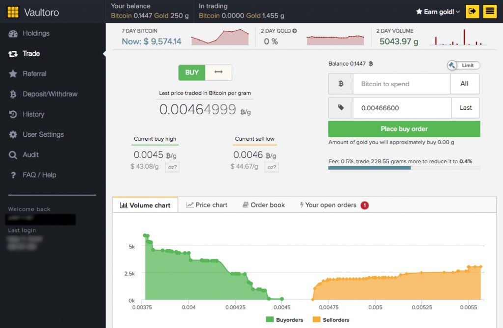 世界初リアルタイム取引プラットフォームvaultoroへようこそビットコインのトレードと、物理的な金(Gold)を最適な価格でトレードしVaultoroであなたは金(Gold)を売り買いすることが出来ます。